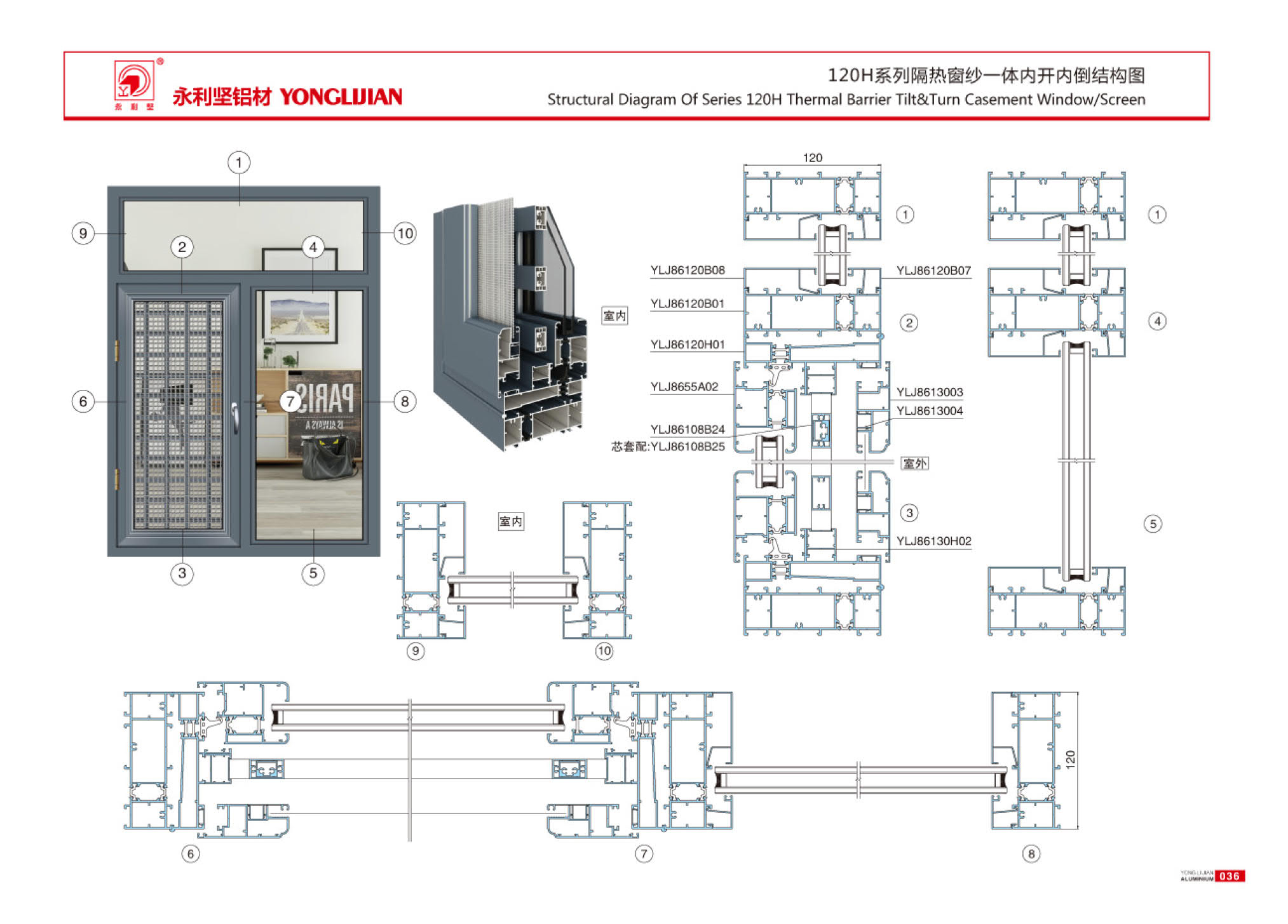 108H、120H、130H、150H系列隔熱窗紗一體內開內倒窗系列